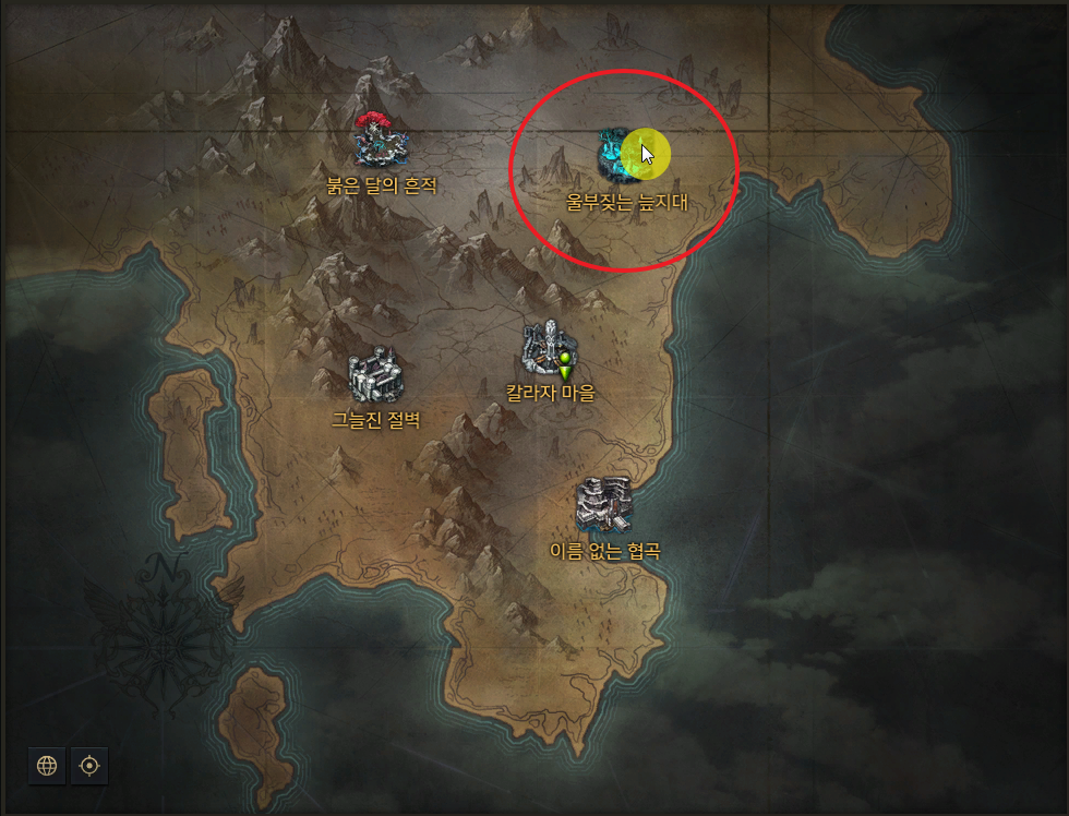 단축키 "M" 미니맵을 켜고 울부짖는 늪지대로 이동합니다.