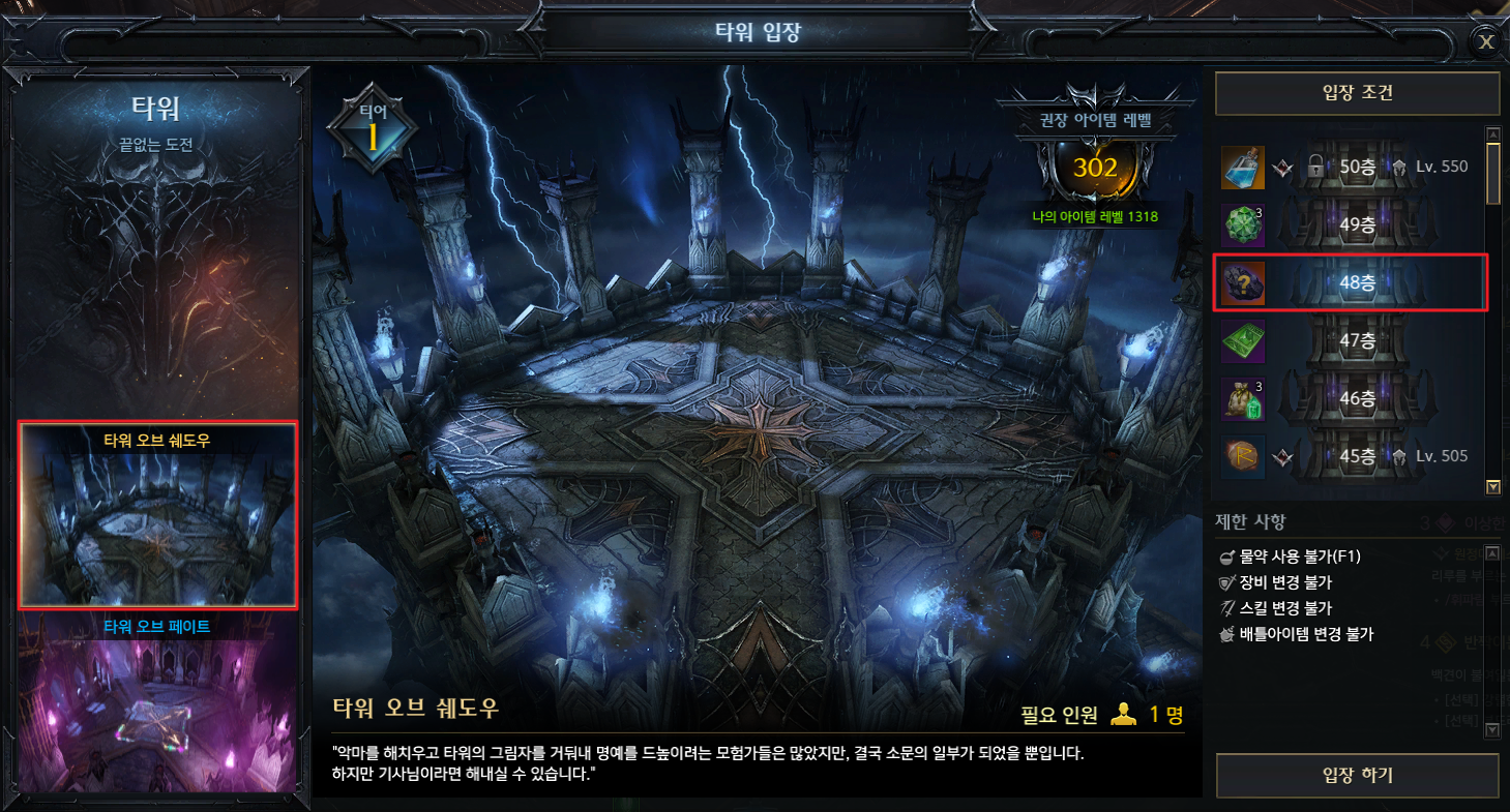 오늘은 로스트아크 콘텐츠 중 1층~50층까지 깨면서 진행하는 타워 오브 쉐도우 48층 공략 방법에 대해서 알려드립니다. 점핑권으로 올라오신 분들은 약간의 컨트롤만 숙지하면 47층까지 무난하게 클리어하셨을 겁니다. 그러다 48층에 와서 당황하신 분들이 있으실 텐데요.