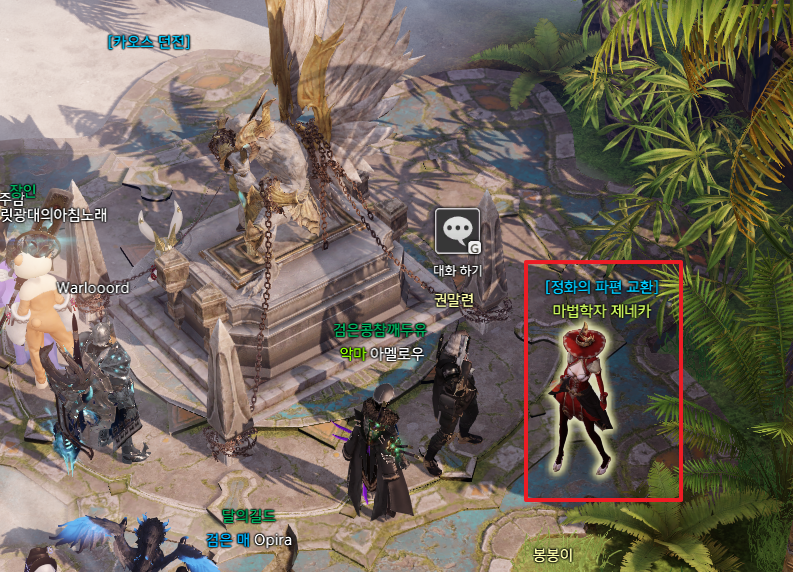바로 카오스 던전 주위에 있는 정화의 파편 교환 NPC를 통해 수호석 결정 수급이 가능합니다. 여기서 정화의 파편은 뭘까요?