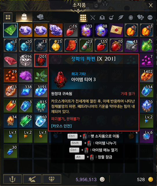 제 경험상 4인 팟으로 1번 도는데 200개가량 얻을 수 있었습니다. 자 그럼 정화의 파편 교환 NPC를 통해 바꿔보도록 하겠습니다.