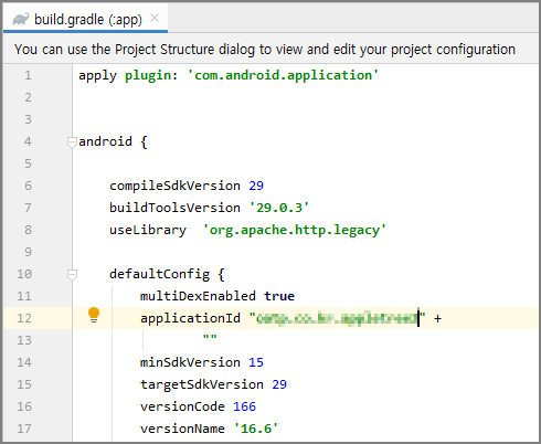 그 다음 build.gradle(:app) 파일의 applicationId에 있는 패키지명도 똑같이 수정해 주세요.