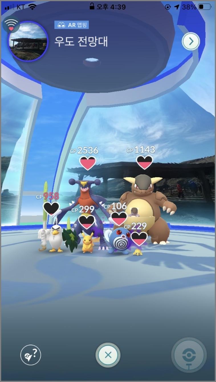 사람이 많은 곳은 체육관 점령이 자주 있기 때문에 괜찮습니다만 이런 섬이나 인적이 드문 곳은 꼭 CP 낮은 몬스터를 배치하세요.