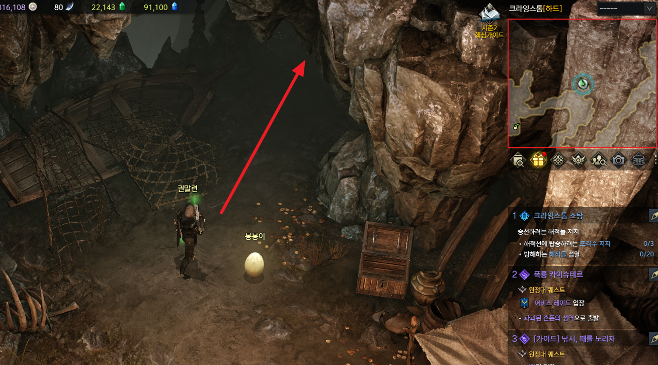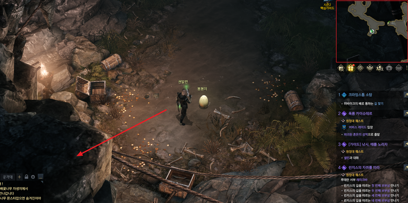우측 미니맵에 보이는 위치로 가서 동굴 입구로 보이는 곳으로 이동하세요. 그럼 자동으로 숨겨진 지역으로 이동합니다.