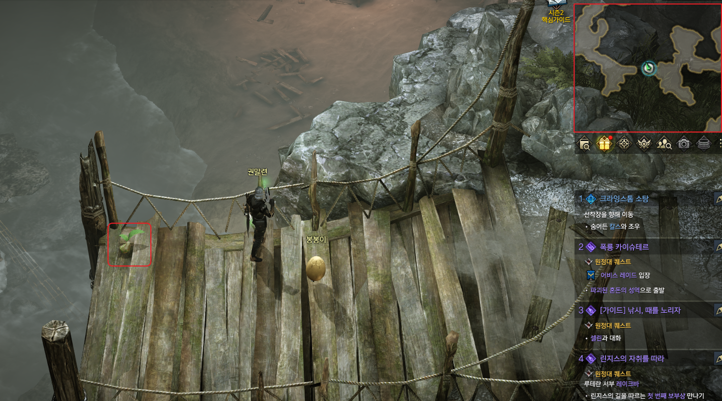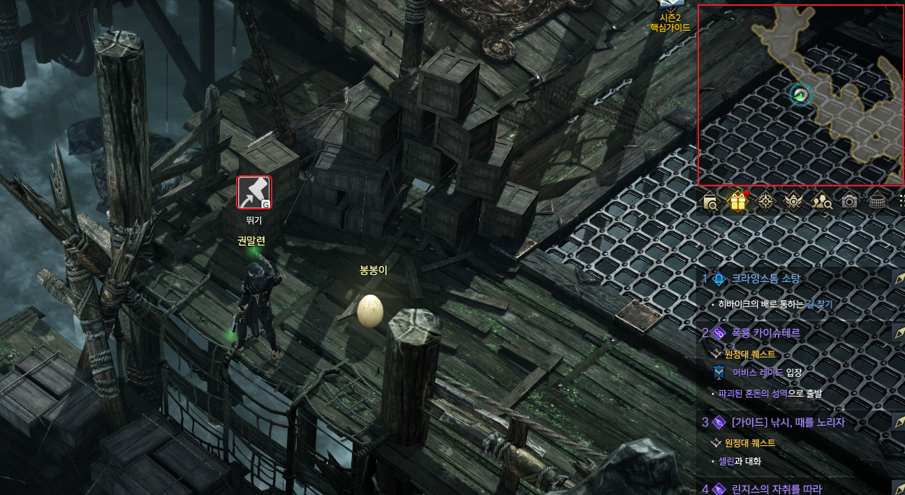 미니맵에 보이는 위치로 이동하면 뛰기 버튼이 활성화됩니다. 뛰어서 아래로 내려가세요.
