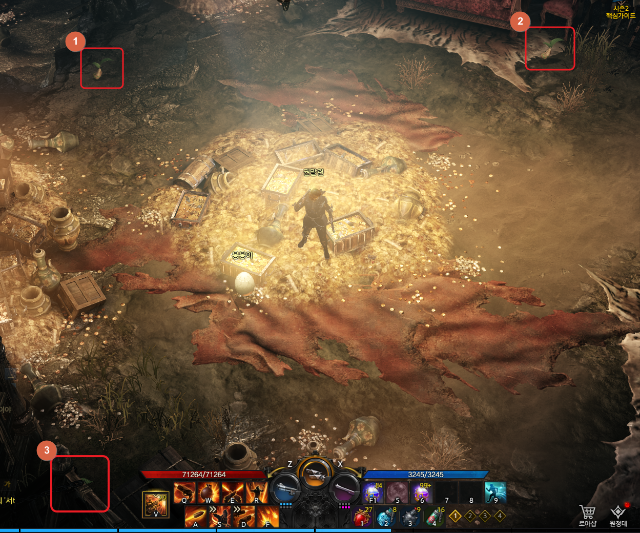 금은보화가 있는 가운데를 중심으로 1시, 7시, 11시 방향에 있는 모코코 3개를 얻을 수 있습니다.