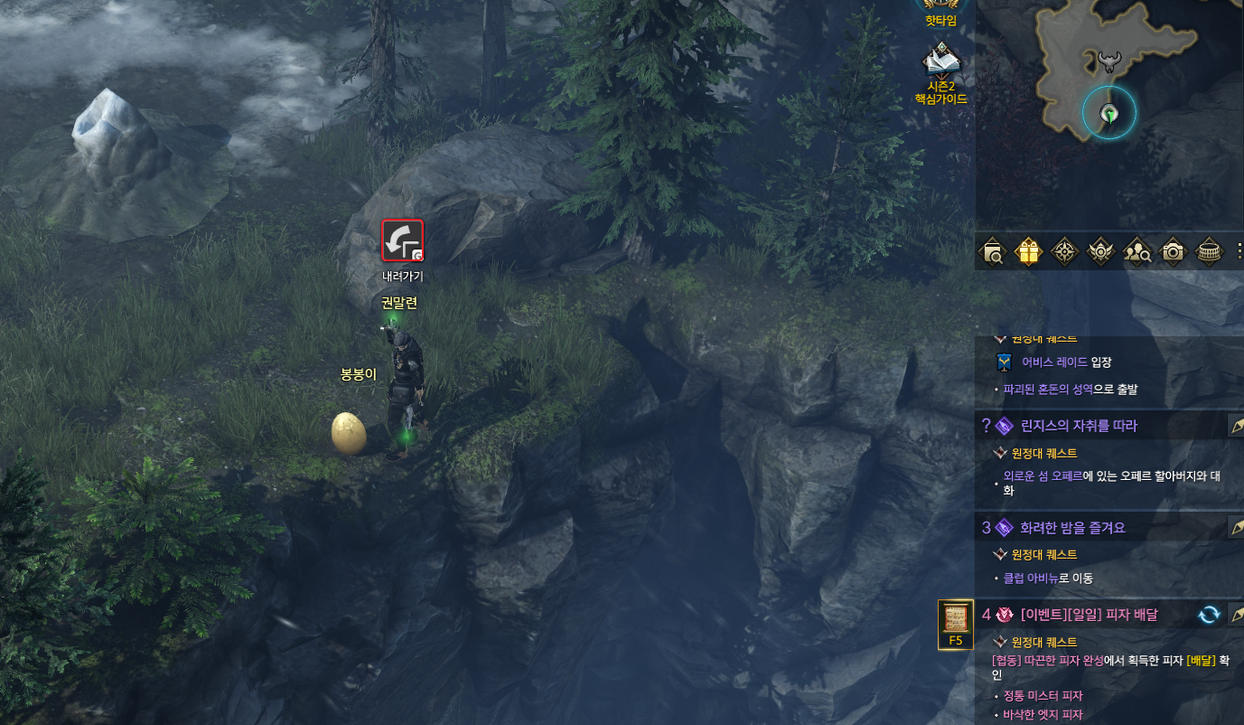 미니맵상 보이는 위치로 이동하면 내려가기 버튼이 활성화됩니다.