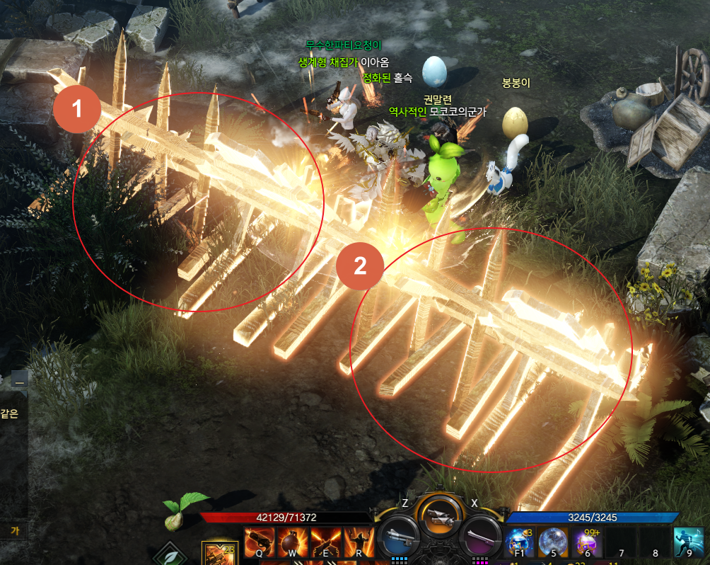 해당 위치에 가면 바리케이드 2개가 있습니다. 한 개만 제거해도 들어갈 수 있으니 한쪽만 집중적으로 때리는 게 좋습니다. 저는 3명에서 시작해서 5명이서 때렸는데 한 5분 정도 걸린 것 같아요. 혼자 치시던 분은 40분 걸렸다고 하네요. 여기만 조금 까다롭습니다.