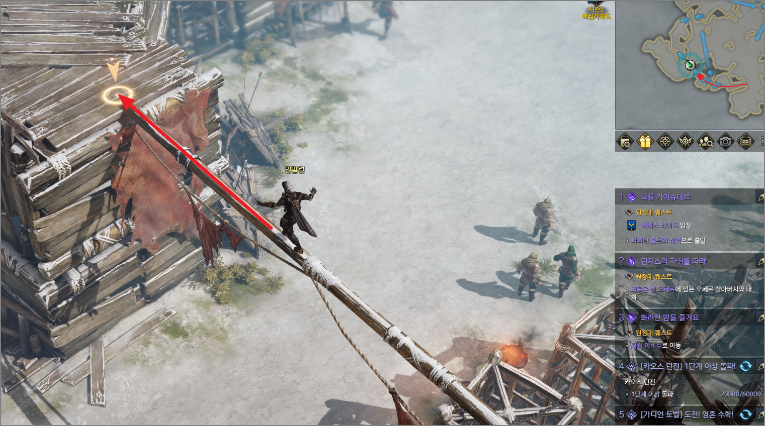 5번 모코코를 먹기 위해서는 건물 위쪽으로 이동해야 합니다. 미니맵에 보이는 붉은색 화살표 방향으로 이동해 주세요.