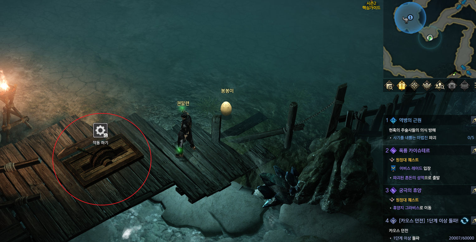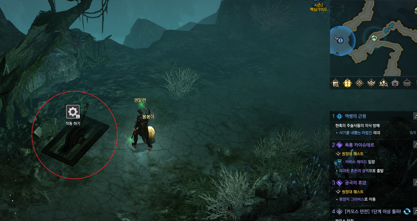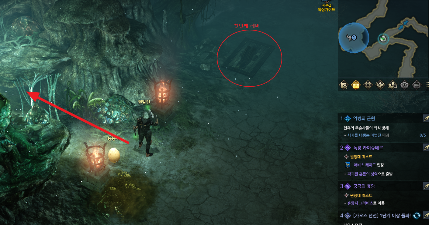미니맵에 보이는 위치로 이동 후에 보이는 레버를 작동시키세요.