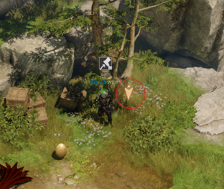 숨겨진 길로 갈 수 있는 상호작용 버튼(오르기)이 활성화 됩니다. 올라가서 모코코 2개 먹고 내려오세요.