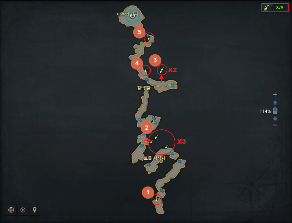 베르닐 삼림에 있는 던젼인 고르곤의 둥지 모코코 위치 알려드립니다. 숨겨진 곳 2곳을 포함하여 총 8개 모코코가 있습니다. 아래 이미지 보면서 가시면 쉽게 찾을 수 있습니다.