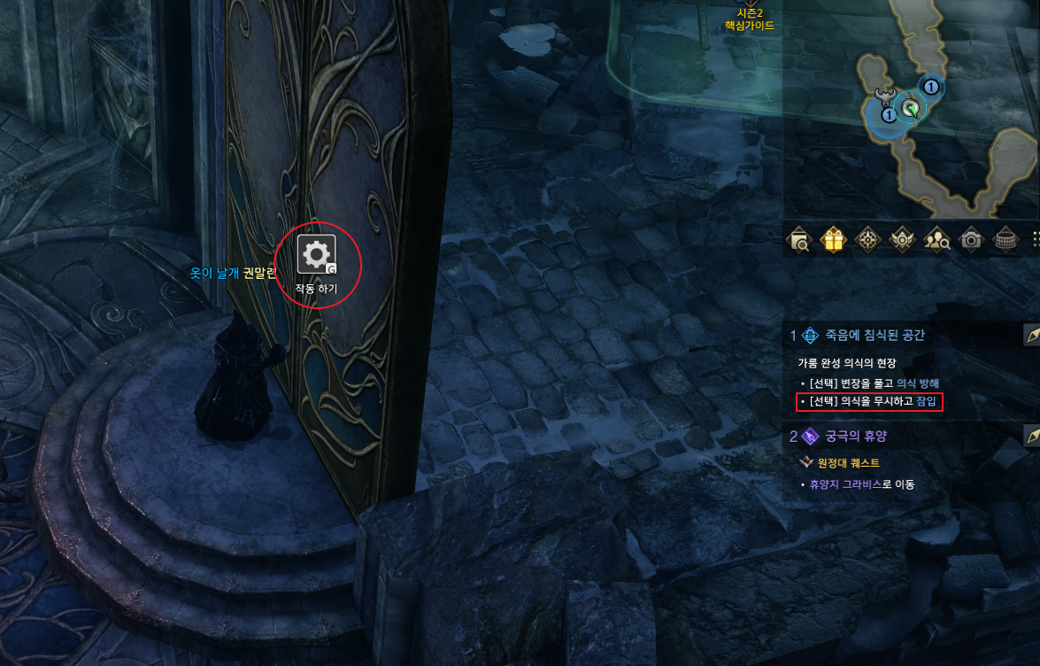 [선택] 의식을 무시하고 잠입을 진행합니다. 의식을 치르는 곳 오른쪽 문을 열고 들어가세요.