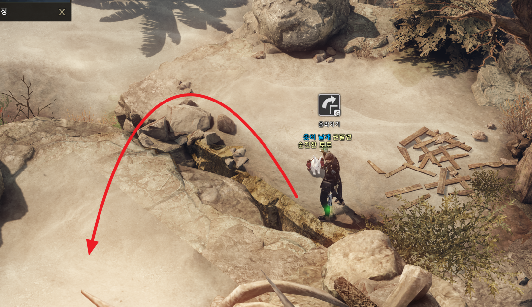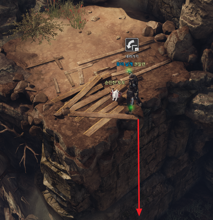 미니맵에 보이는 위치로 이동하면 올라가기 상호작용 버튼이 활성화됩니다. 절벽으로 올라가세요.