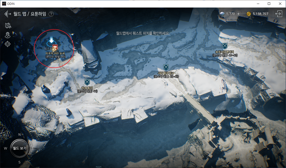 서브 퀘스트를 클릭하면 월드맵에 퀘스트 위치가 표시되는데요. 바로 티르의 서리 요새 위쪽으로 찍힙니다. 보스인 티르가 위치하고 있는 자리죠.