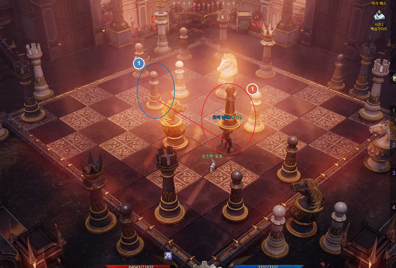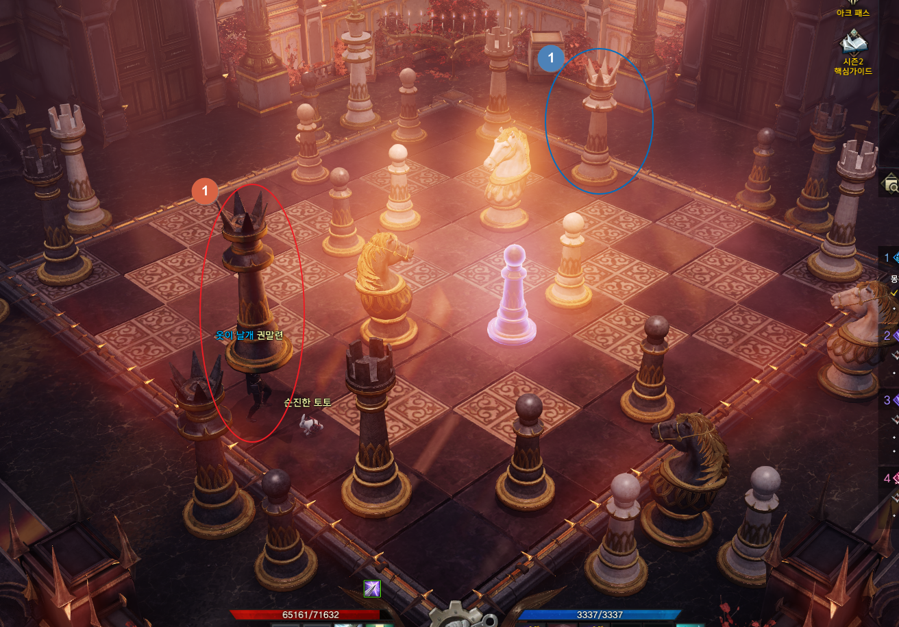 이번 포스팅에서는 엘조윈의 그늘에 있는 던젼인 몽환의 궁전의 체스의 방 정답 말 놓는 방법 알려드립니다. 대칭이 되도록 정답 말을 놓으라고 하는데요. 한 번만 해보면 쉬우니 아래 이미지 참고하세요. 총 3번에 걸쳐서 해야 하는 미션입니다. 마지막 3번째는 말 2번 놓으셔야 합니다. 유저마다 상황판이 다를 수 있습니다. 제가 했던 판을 예를 들어 설명해볼게요.