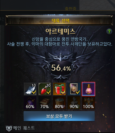 아르테미스 대륙 모험의서를 50% 달성하면 매력 증가 물약을 줍니다. 습득시 자동으로 매력 10 증가합니다. 아르테미스 모험의서 관련 글을 아래 링크를 참고하세요.