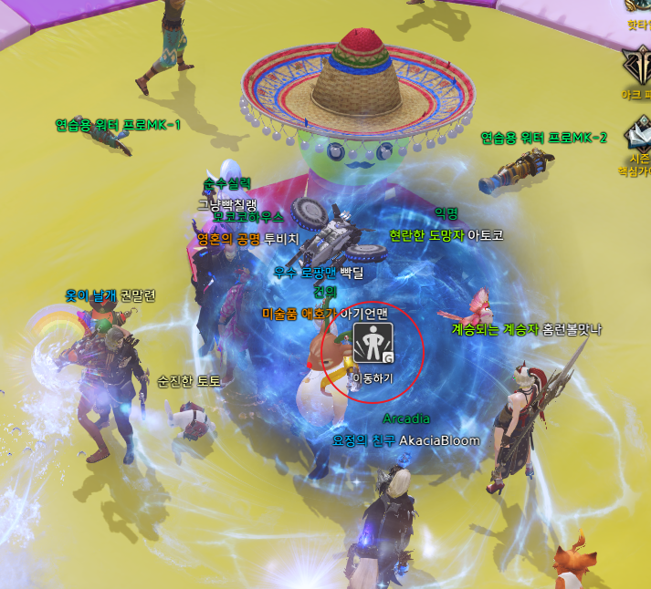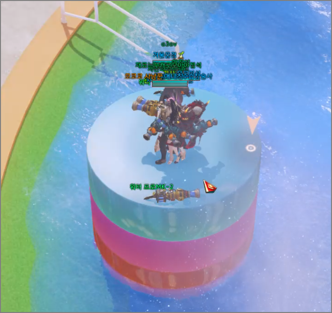 마하라카 파라다이스섬 가운데에 워터팡 아레나가 있는데 말이죠. 워터팡 아레나는 로아 이용자끼리 물총 싸움을 하는 콘텐츠인데 매시각 짝수 시간 정시에 열립니다.