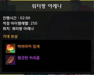 현재 마하라카 파라다이스 섬에서 이벤트를 하고 있는데요. 그중에서 [이벤트] 쏘고, 던지고, 밀어내기! 퀘스트에서 막히는 분들이 계십니다. 바로 워터팡 아레나에 입장하기인데요.