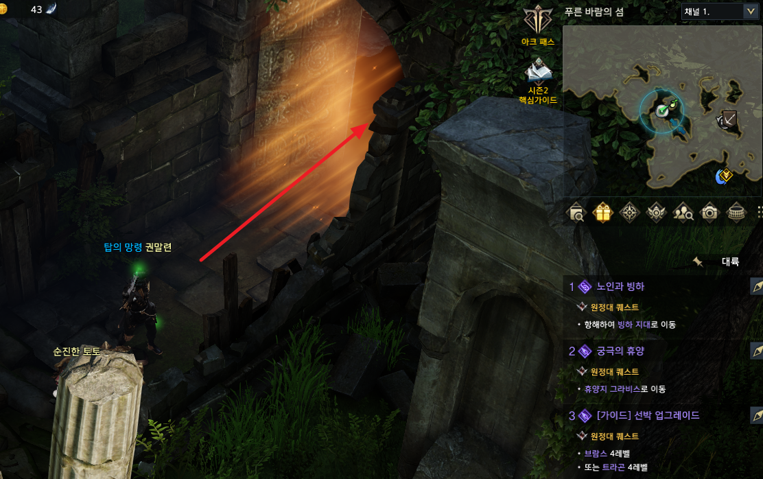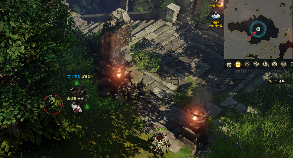 미니맵에 보이는 위치에서 1시 방향으로 쭉 올라가세요.