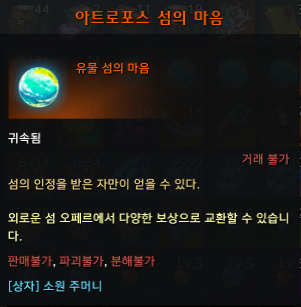 기념주화를 던지면 소원 주머니를 얻을 수 있습니다. 소원 주머니를 열면 확률적으로 아트로포스 섬의 마음을 얻을 수 있어요. 저는 에포나 의뢰하기도 전에 모험 퀘스트로 받은 기념주화 3개로 했더니 바로 나왔습니다. 운이 좋은 건지, 원래 잘 나오는 건지 모르겠어요.
