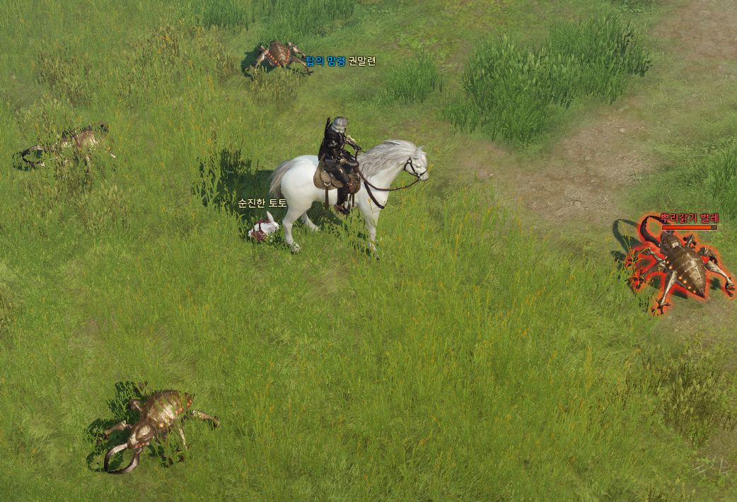 퀘스트 설명을 보면 흰구름 백마나 바람갈기 야생마의 Q 스킬을 사용하라고 나와있습니다. 그리고 섬 전역에 있는 뿌리갉기 벌레를 25마리 처치하라고 합니다. 위에 설명만 보면 흰구름 백마나 바람갈기 야생마를 타고 Q 스킬을 써서 뿌리갉기 벌레 25마리를 잡으라는 것처럼 생각이 듭니다. 실제로 Q 스킬로 잡아봤는데 한 번에 죽지도 않고 너무 오래 걸리네요. 3번은 밟아야 죽습니다.