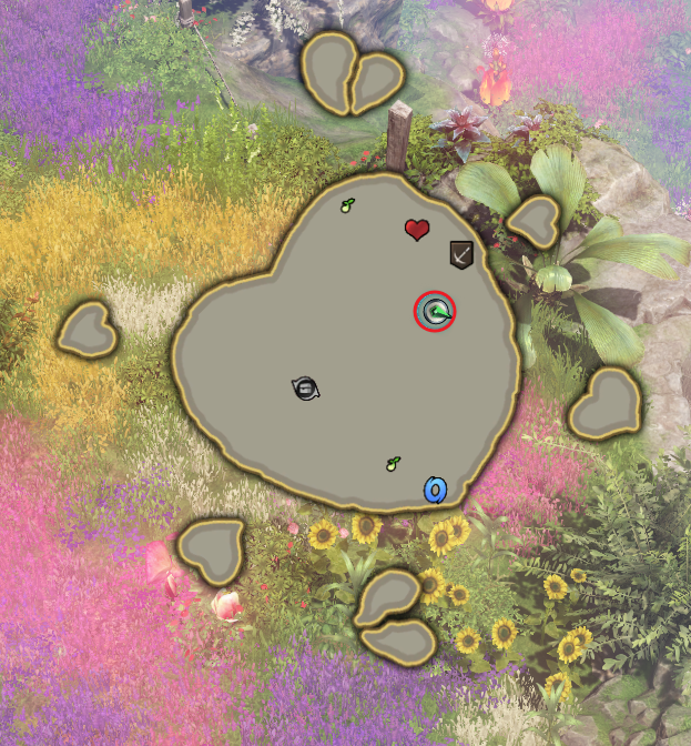 12시 방향에서 교환 상인 서머스에게 가는 길에 상호작용할 수 있는 꽃이 있습니다. 미니맵 위치를 확인하세요.