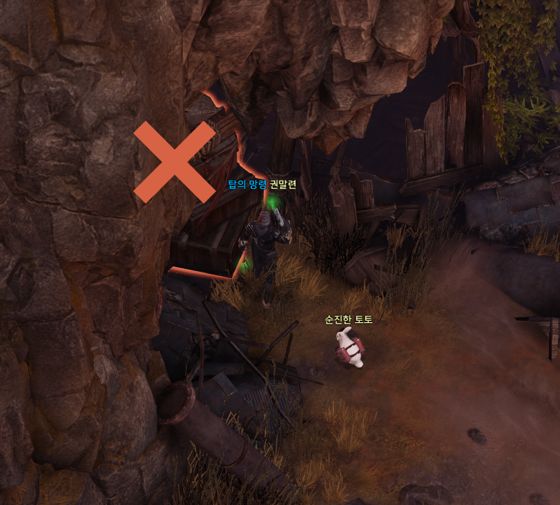 모코코가 있는 동굴 입구를 장애물이 가로막고 있습니다. 한 1분 정도 때리면 부술 수 있습니다. 참고로 나갈 때도 부숴야 합니다.
