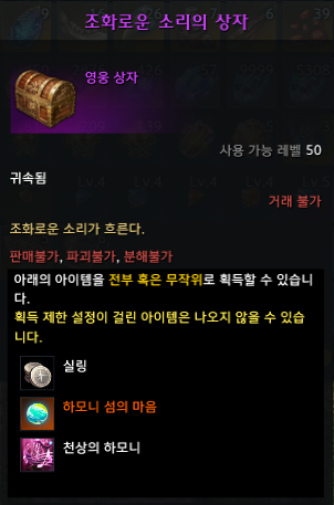 하모니 섬에 입장 후 3분이 지나면 협동 퀘스트가 시작됩니다. 총 3개의 협동 퀘스트를 해야 하는데요. 협동 퀘스트를 통해 얻은 상자를 열어 섬의 마음과 천상의 하모니를 얻을 수 있습니다. 잘 모르시는 분들은 그냥 사람들 따라다니면 쉽게 깰 수 있는 퀘스트입니다. 보상으로 얻은 상자를 통해 섬의 마음과 천상의 하모니를 얻을 수 있습니다.