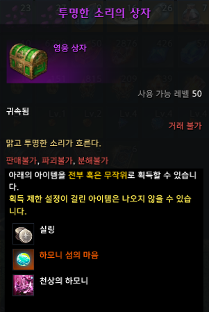 샘물을 해당 위치로 옮기기만 하면 됩니다. 인당 2~3번 하면 끝나네요. 보상으로 투명한 소리의 상자를 얻습니다.