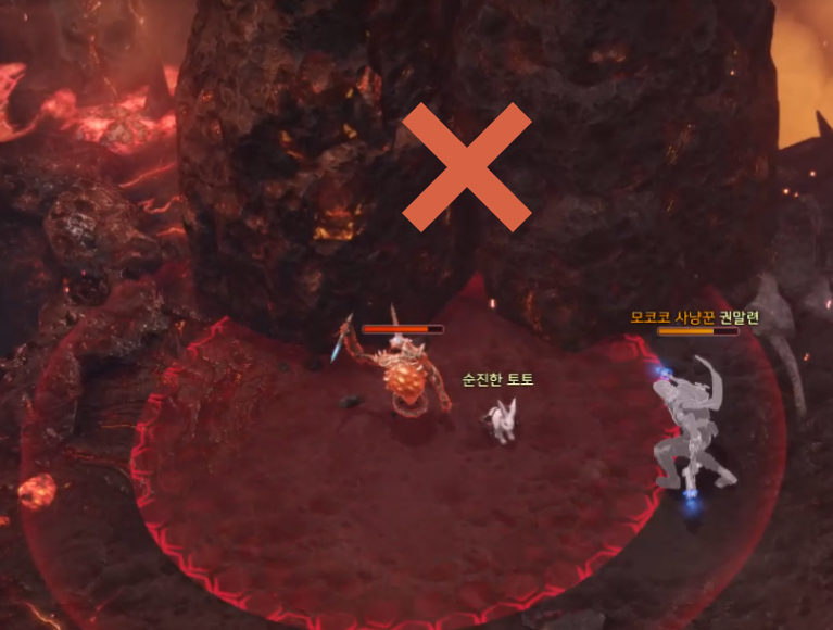 두 번째는 절벽을 무너 뜨려야 하는데요. 절벽 근처에 자폭하는 몹 두 마리가 있습니다. 절벽 쪽으로 유인해서 폭파시키면 됩니다. 실수해도 다시 리젠되니 안심하세요.