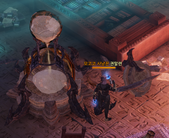 2번 방의 깨져버린 모래시계와 3번방의 시간이 흐르는 모래시계를 찾고 다시 2번방 수상한 석판을 찾아서 메피토에게 말을 걸면 완료됩니다.