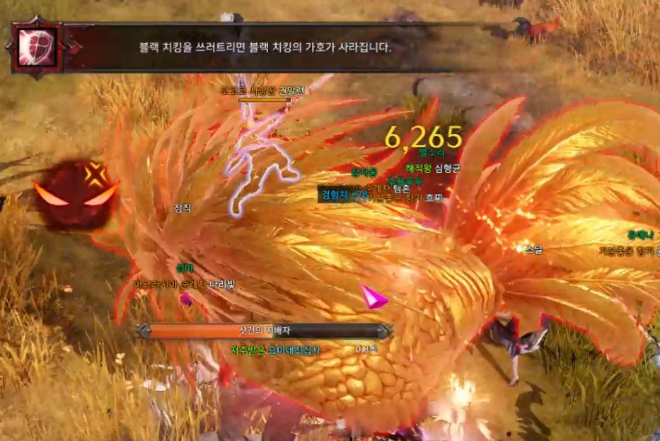 입장 후 3분이 지나면 치킹들아 물러가라! 협동 퀘스트가 시작됩니다. 화이트치킹, 블랙 치킹을 잡으면 마지막으로 골드 치킹이 나오는데 골드 치킹을 잡으면 확률적으로 빛나는 황금 깃털을 얻을 수 있습니다. 퀘스트 시작 아이템으로 완료하면 보상으로 알라케르 섬의 마음을 줍니다. 글 쓰는데 치킨 먹고 싶네요.