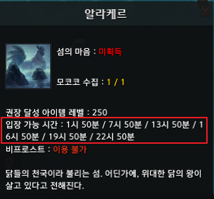 모험 섬 일정에 따라 입장할 수 있습니다.