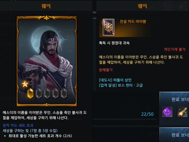 업적 메뉴 좌측 모험 > 일반 누르고 아래로 쭉 내리다 보면 보스 헌터 : 고급이 있는데 완료하면 웨이 카드를 주네요. 보스들은 모두 섬에 있는 보스들인데요. 아래 지도 위치와 입장 및 보스 출현 시간 참고하세요. 업데이트 및 패치로 인해 정보가 변경될 수 있으니 잘못된 정보는 댓글로 남겨주세요.