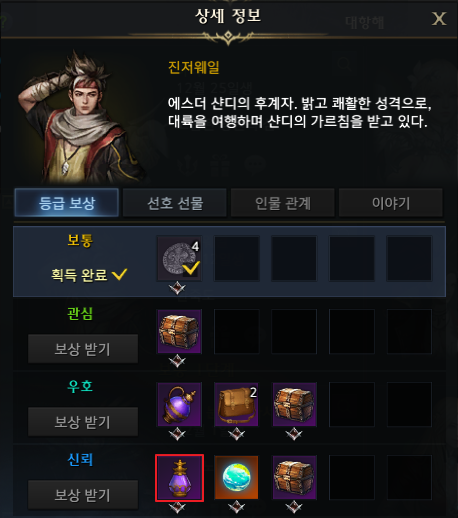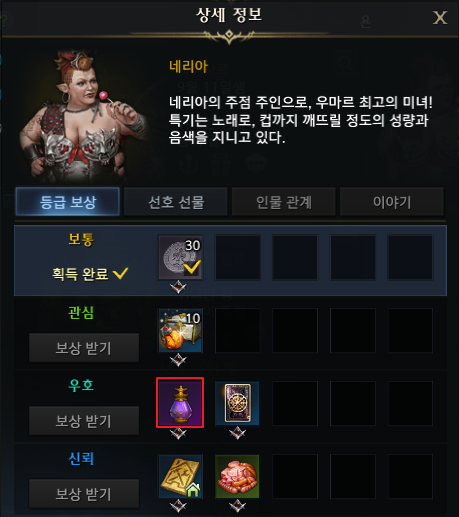 이번 포스팅은 매력, 지성에 이어서 성향 중 하나인 담력 올리는 방법 알려드립니다. 다른 것과 마찬가지로 모험의 서, 평판, 호감도 작업을 통해 담력 증가 물약을 얻어서 올리는 방법입니다. 아래 이미지와 설명 보시고 차근차근 올리시기 바랍니다.
