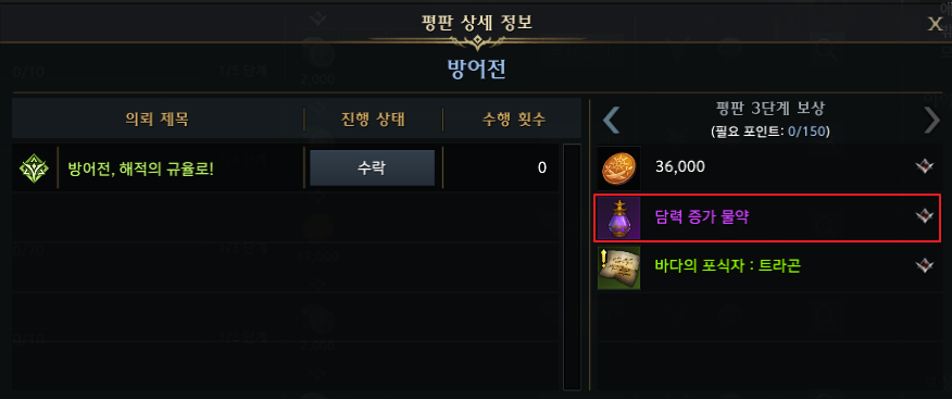 3. 방어전 (히프노스의 눈) - 평판 3단계 보상