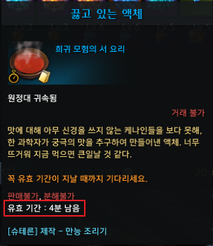 재료인 아드레날린 강화 수액을 떠돌이 상인에게 구매한 후 만능 조리기에 제작 의뢰합니다. 떠상 위치는 아래 링크를 참고하세요.
