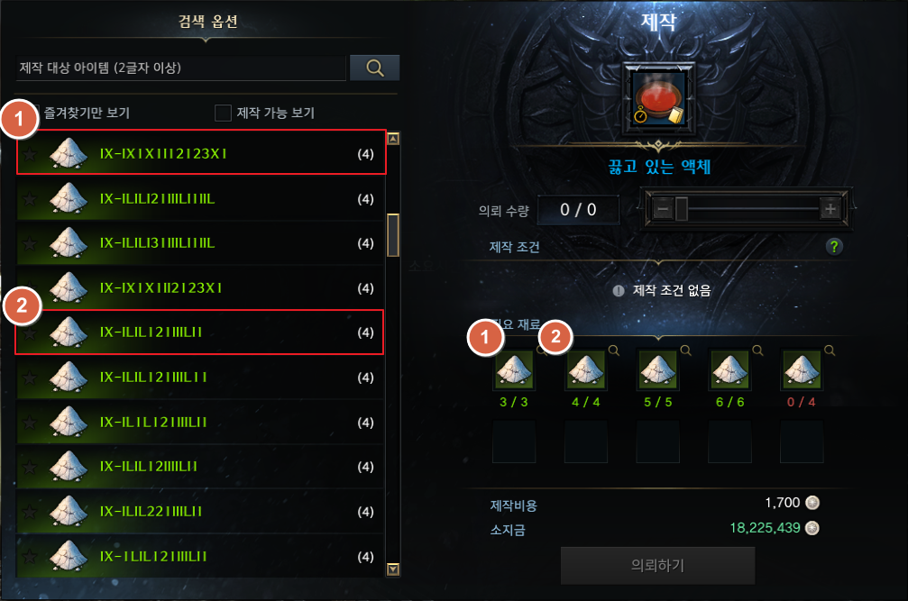 슈테른에 있는 잡화 상인 루카에게 알 수 없는 결정 22개를 구매합니다. 알 수 없는 결정으로 만능 조리기에게 끓고 있는 액체 제작에 필요한 재료 5개를 제작해야 합니다. 재료명이 헷갈리기 쉬워 아래 이미지 보고 그대로 개수만큼 제작하시면 됩니다.