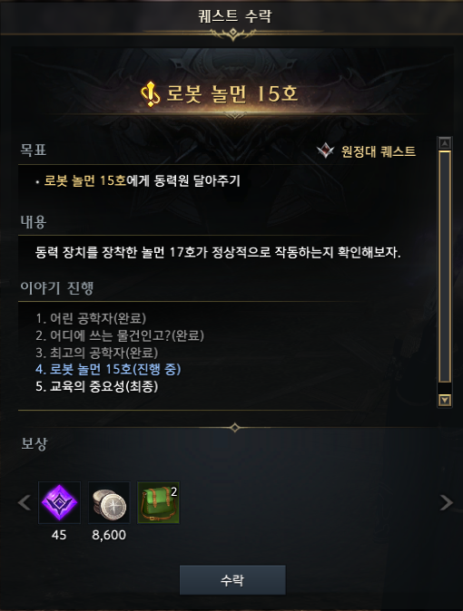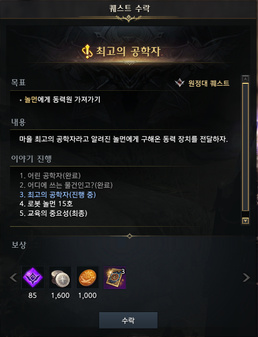 보상 : 고급 전투 각인서 선택 주머니 3개, 해적주화 1,000개 , 태초의 조각 3개